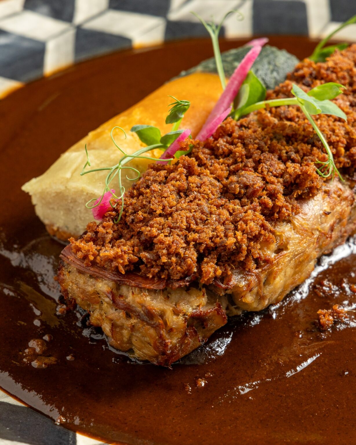 Tiene amor incondicional por el arte, una eterna inspiración en la cocina de su abuela y una pasión por la investigación de campo que aplica en varios de sus platillos, como sus tradicionales chiles en nogada que trabaja con productores de Calpan, Puebla; las favoritas papas Bruna que usa papas criollas cultivadas en Acatic, Jalisco; o el reciente lanzamiento del décimo mole de sus Probaditas de Mole que creó en conjunto con la cocinera oaxaqueña Olga Cabrera.